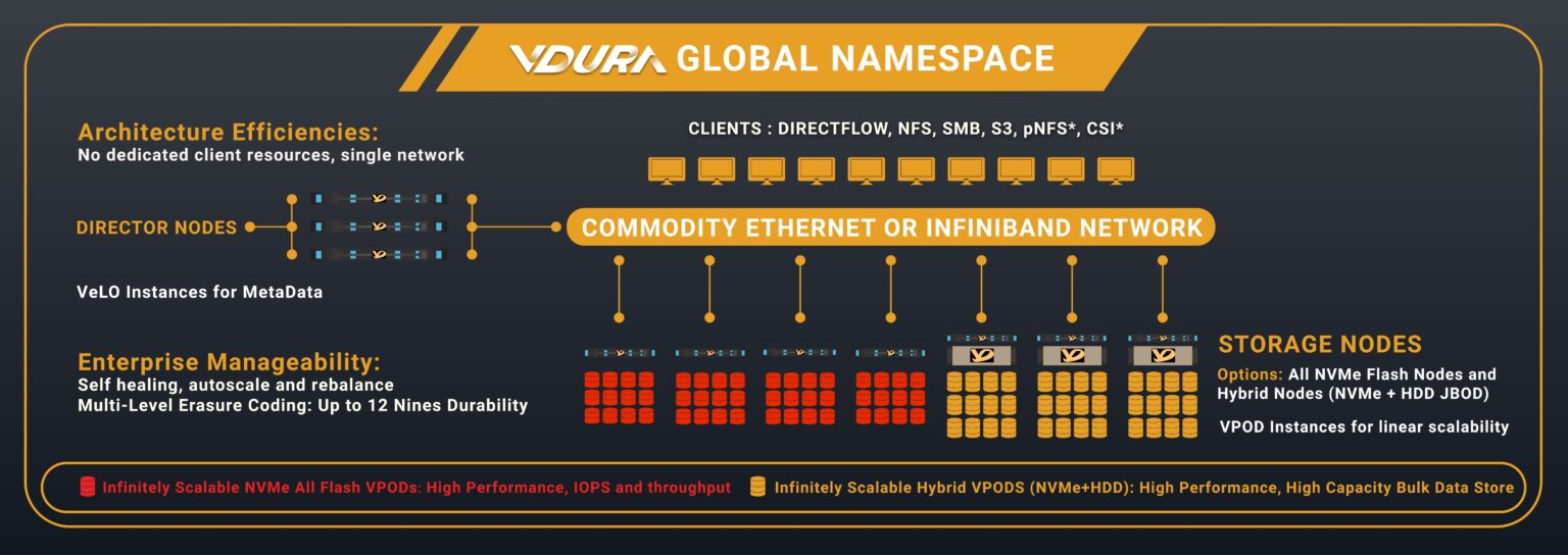 The performance of a supercomputer-class parallel file system, the economics of cloud-scale architecture, and the simplicity of modern software-defined storage. Only VDURA delivers Performance, Economics, and Simplicity in one platform.