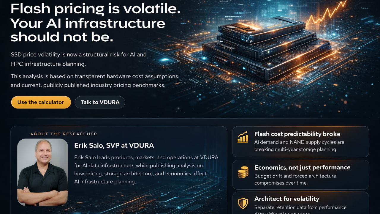 Jan 20, 2026 (LinkedIn Post) – By Erik Salo, Senior Vice President, VDURA View the Flash Volatility Index and Storage Economics Optimizer Tool Here: https://www.vdura.com/flash-volatility-index-and-storage-economics-optimizer-tool/...